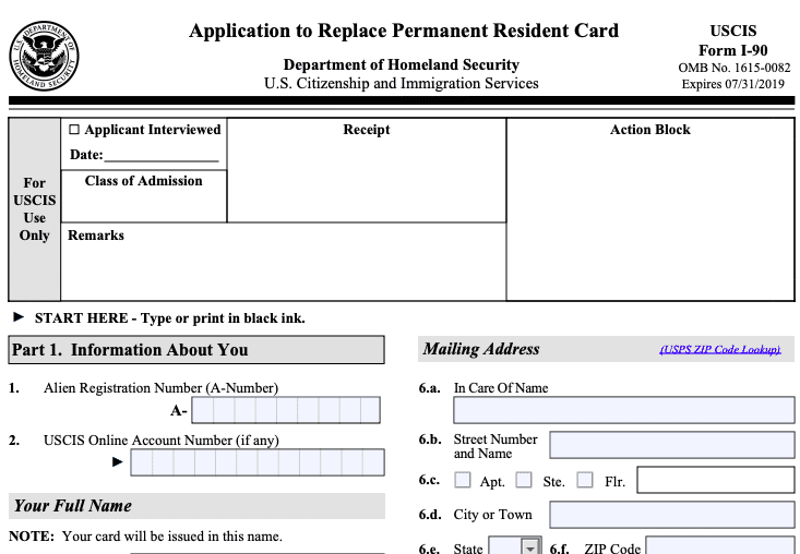 ¿Cómo llenar el formulario I-90?